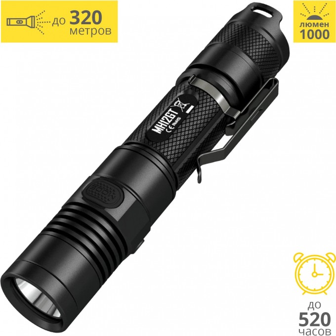 - яркость ручного фонаря MH12GT составляет 1000 люмен;